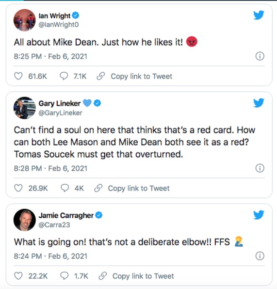 Mitrovic mente ikke at Soucek have opført sig unfair. Scott Parker sagde efterfølgende: “Jeg synes ikke, det var til en udvisning”.