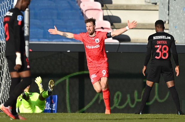 ” Til sidst blev samme Stages reduceringsmål i overtiden til resultatet 2-1 tjekket, men ikke annulleret, selv om det unægtelig lignede, at Jonas Wind var offside, inden han pressede Tobias Børkeeiet til at begå en fejl, der førte til scoringen”.
