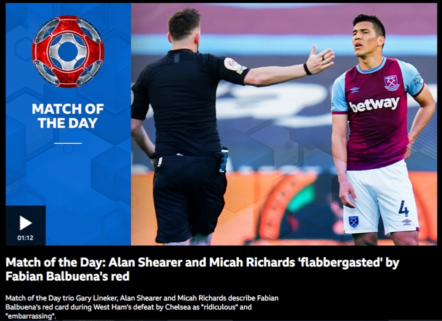 Former Arsenal and England defender Lee Dixon said: “If that’s a red then the game has gone. Where is Balbuena suppose to put his leg? In his pocket? Levitate? Somebody please tell me”.